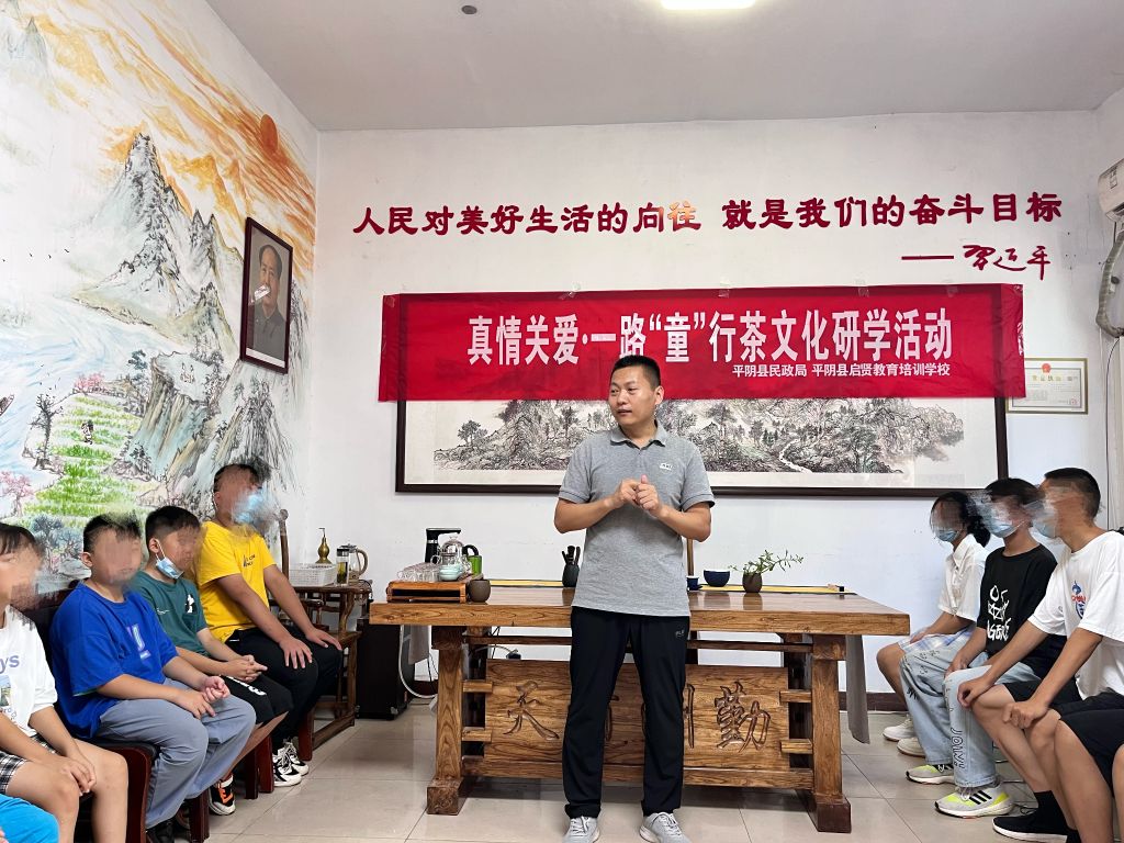 近日,平阴县民政局社会事务科联合社会组织启贤教育培训学校和洪范池镇社工站,带领孤困儿童、留守儿童到玫瑰镇东唐村参观养心茶制作,开展了一次集知识性、实践性、趣味性于一体的研学活动。