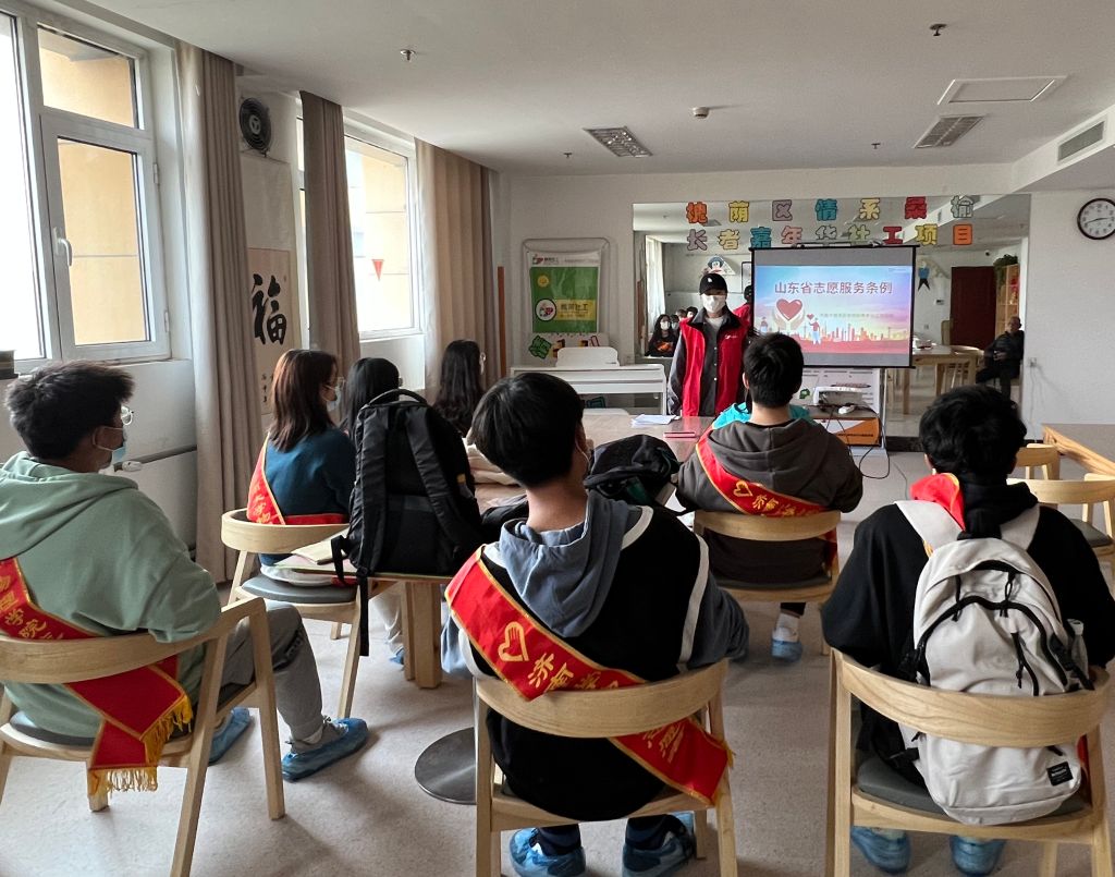 项目组社工在经过内部系统学习后,在槐荫区社会福利服务中心为济南大学大学生志愿者开展宣传学习活动,提升大学生志愿者的服务意识,规范志愿服务活动。大学生志愿者在学习中更加明确了自身的权利和义务,表示在今后的志愿服务中,严格遵守《山东省志愿服务条例》,规范志愿服务活动,弘扬志愿服务精神,提高志愿服务水平,为福利中心的住养老人幸福晚年生活增添一抹色彩。