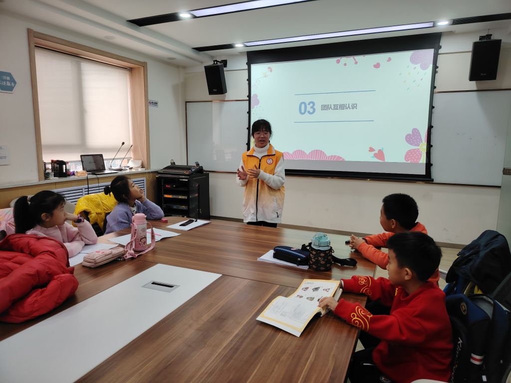 在开营仪式上,驻站社工详细介绍了本期冬令营活动目的及内容,通过介绍社工站和自我介绍,引导志愿团队和服务对象分别进行自我介绍,在欢快轻松的氛围中,团队成员之间互相认识、拉近彼此距离。根据实际参营和志愿人数,社工对组员进行分组,组员认领志愿者作为小组负责志愿者老师。