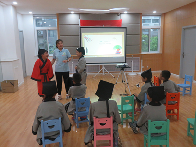 首先,社工带领组员对上次课堂的内容进行了回顾,温习了古诗《赋萧瑀》,组员们的掌握程度良好,仍然能够熟练的背诵下来。接着,社工以“义”的繁体字“義”为主线,通过对其结构、字意的延伸,引导大家对其涵义进行了学习。为帮助大家对“信义”一词有更深层次的了解,社工放映了《三字经》的视频片段《守信笃义》,并让组员进行了角色扮演,引导大家将故事与现实相结合,培养其讲信义、重承诺的意识。最后依然是我们的整理衣服时间,经过两次活动的开展,组员们叠衣服的手法越来越娴熟。