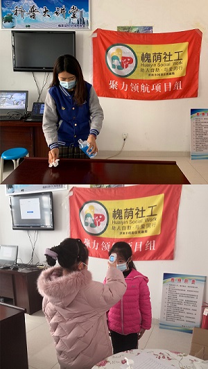 整洁卫生的环境是活动安全开展的重要保障,26日一早,社工开启清洁模式,对活动室进行全面消杀。下午一点半,社工邀请蓝天救援队邵老师以线上直播的形式为本期冬令营拉开帷幕。邵老师从冬季冰溺、火灾、交通安全等日常生活中容易造成意外伤害的几种状况逐一分析讲解,让青少年充分认识安全防范的重要性和必要性。随后,在社工的带领下,青少年们签署防疫承诺书、组建安全小组、创立小组名称和口号,逐步建立熟悉感及凝聚力,为之后的几期活动打下基础。