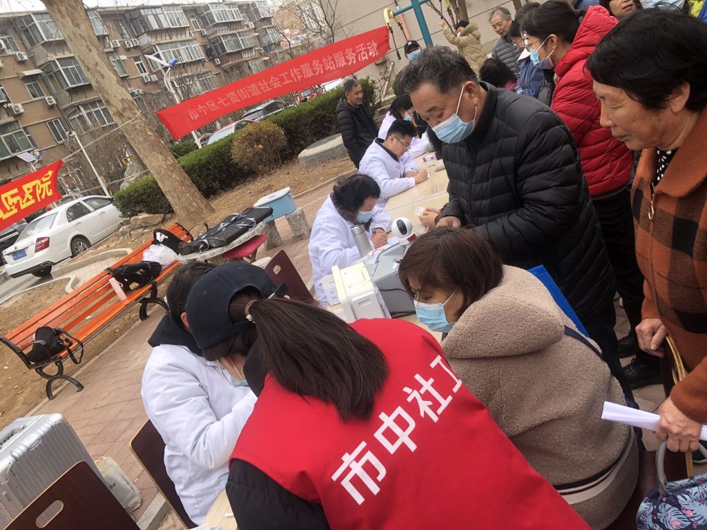 义诊现场十分热闹,前来咨询就诊的辖区居民络绎不绝。社工细心地引导居民排队,并协助他们填写基本情况登记表。志愿者们则负责进行疾病的初步筛查、诊断、咨询、体格检查以及用药指导等工作。