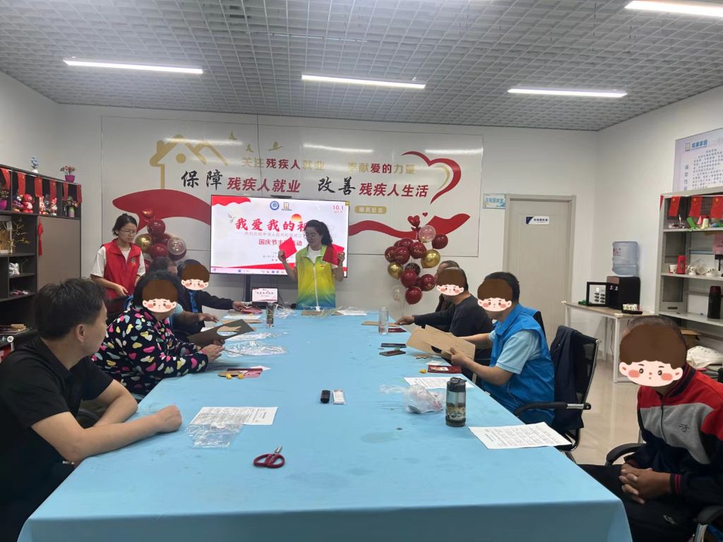 活动现场被布置得温馨而热烈,到处洋溢着节日的气氛。随着活动的正式开始,大家在社工和志愿者的协助下,亲手制作了各种形状的国庆主题火炬,如星星、和平鸽等。他们细心地剪裁、粘贴,每一个细节都透露出对节日的庆祝和对美好生活的向往。通过手工制作,不仅让大家感受到了国庆的氛围,还锻炼了他们的动手能力和团队协作能力。