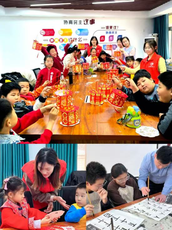 在活动组织过程中,社工充分发挥专业优势,根据孩子们的年龄特点和兴趣爱好,将活动科学合理地分为五个阶段,每节课程都邀请专业公益老师进行针对性指导和互动交流。比如在“笔墨丹青照古今”节次,社工引导孩子们书写春联、绘制福字。这一活动不仅让孩子们学习到书画知识,更让他们亲身感受到春节传统习俗的独特魅力。孩子们满怀热情地挥毫泼墨,一幅幅童趣盎然的春联和福字,既承载着他们对新年的美好憧憬,也让初次接触书画的孩子克服了陌生感和畏难情绪,在相互学习中共同进步。