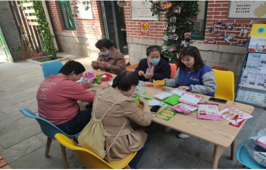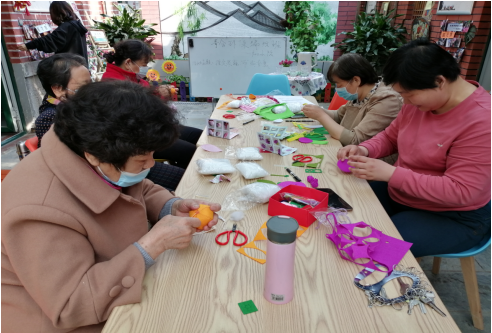 一方圆桌,一壶清茶,作为青合站的服务对象,今天他们围坐在方桌盘,齐聚“和合小院”。在大家的欢声笑语中,青合站社工小陈(陈童),在小院茶馆的宣传板上,写下了本次活动的主题:指尖果蔬,“布”满春意。
