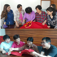 (昆仑街社区、裕北社区的老党员在绣党旗)