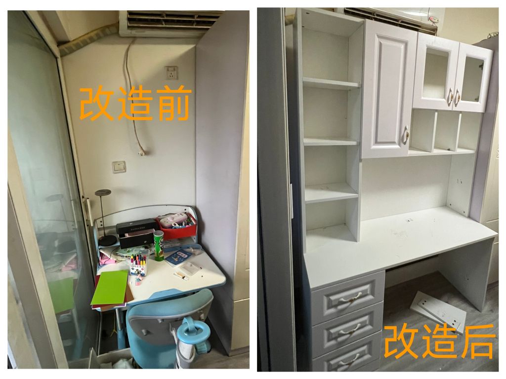2023年8月3日,首批微改造家具制作完成,兴福街道办事处社会事务办公室负责人石宗清、兴福街道社工站、兴福街道社区社会组织联合会、顺安社区居委会代表一行人来到困境家庭中协助进行第一次家庭微改造。打扫卫生、归置物品、搬运家具,随着众人齐心合作,改造成果渐渐显露。“谢谢叔叔阿姨们,我终于有自己的书桌了!”,来自低保单亲家庭的成成(化名)露出了甜甜的笑容。过去她的学习、生活空间异常狭窄,学习用的书籍因为无处存放只能堆放在床缝间,但是家里没有额外的费用给成成配置适合的书柜,这成了成成的一个心愿。如今在山东省乡村振兴基金会顺安社区基金的支持下,成成能拥有一个舒适的学习、生活空间。