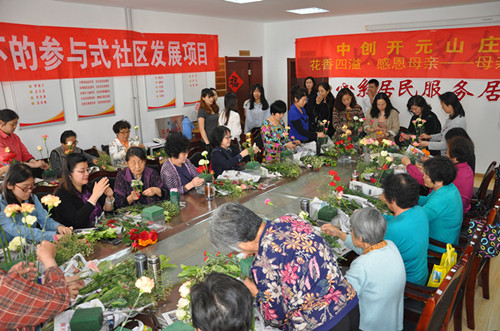 为迎接母亲节的到来,使母亲们享受这个专属于她们的节日,2016年5月5日上午,中创开元山庄社区文化教育视角下的参与式社区发展项目组联合妇女儿童家园在社区会议室开展了“花香四溢·感恩母亲”母亲节插花活动。