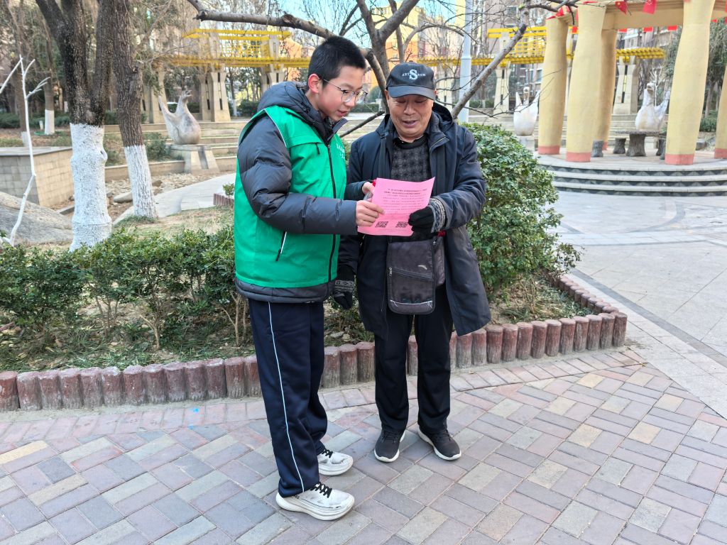 活动期间,小小志愿者们分组深入社区的每一处。社工全程密切关注,及时给予支持与引导。面对社区里的老人,志愿者们耐心倾听他们回忆往昔春节时阖家团圆的温馨场景,以及那些代代相传的孝道礼节。志愿者们主动分享现代科技如何助力亲情传递,像是利用智能音箱播放长辈喜爱的戏曲、评书,让他们随时享受娱乐。若讲解过程中遇到老人不太理解的地方,社工便会上前,用生活实例深入浅出地阐释。老人们听得津津有味,脸上洋溢着幸福,直夸孩子们懂事,让他们感受到了社区对老年人的关爱,仿佛找回了年轻时对春节满满的期待。