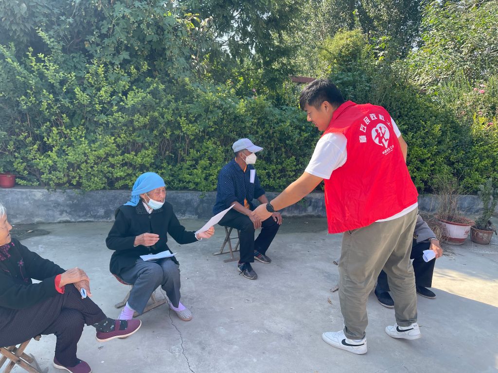 当前,国内疫情呈多点散发、局地暴发态势,疫情防控形势依然严峻复杂。国庆将至,人员流动和聚集增加,疫情输入和传播风险进一步加大。为应对当前疫情防控严峻形势,提高村民疫情防控意识,2022年9月30日,白云湖街道社工站在张家林村开展“就地过节”倡议宣传活动。