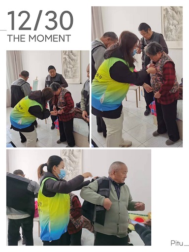 为让老人过一个温暖舒适的冬天,社工们为院里老人发放衣物。发放现场,社工耐心的为老人们试穿新衣,并叮嘱他们要注意卫生,勤换衣物。老人们穿上崭新的衣服,高兴地合不拢嘴,真正感受到了敬老院的温暖。