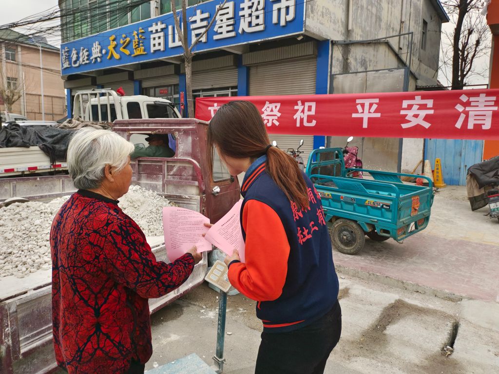 苗山镇社工站开展“文明祭祀,平安清明”宣传活动