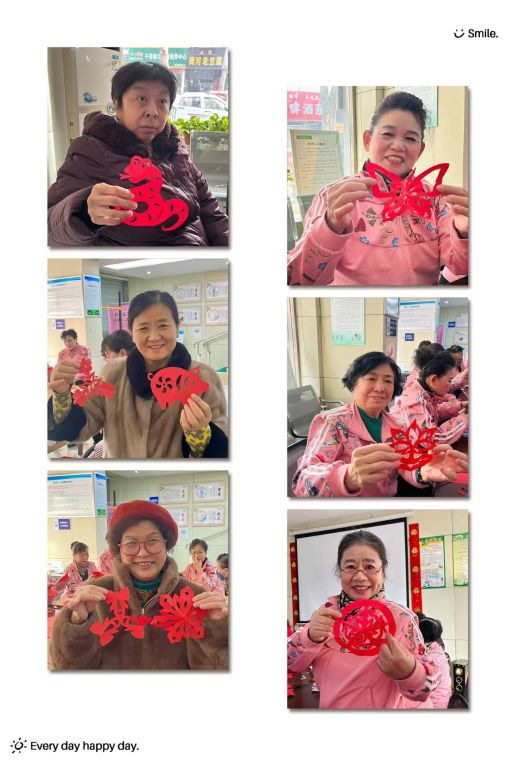 活动前,社工精心准备了红纸、剪刀等材料,为老人们提供了丰富的剪纸图案模板,从简单到复杂,让每一位参与者都能找到适合自己的图案。活动中,社工向老人们进行了简短的剪纸示范,介绍了剪纸的起源、技巧和传承价值。大家兴致勃勃地倾听,迫不及待地想要亲自动手尝试。老人们精心挑选了剪纸样式,选好后立刻进入状态投入创作中,他们拿起红纸和剪刀,跟着图样小心翼翼地将留白处剪掉,并不时相互交流心得,相互帮助。一双双巧手,把一张张红纸变成了精美的窗花,看着手中的窗花作品,他们的脸上洋溢着幸福的笑容,手中的作品也仿佛在诉说着对新年的美好祝愿。