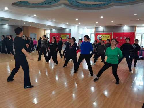 下午两点钟,志愿者老师首先带领成员们简单的复习了前四节课学习的基本舞步,目的是巩固大家的基本功;随后根据成员们的接受能力和年龄段,将成员们分为两个小组,目的是通过小组学习的方式,成员们可以相互鼓励学习,相互欣赏点评,还提高了大家的对舞步技巧的掌握能力,能在相互比较中进步;通过一个月的学习及分组比赛,成员们有了初步了解跳国标舞的方法和技巧,大大提高了大家对跳国标舞的自信和兴趣;最后志愿者老师明确表示,在春节前会教授大家一支完整的舞,如果大家成绩理想,志愿者老师也会组织大家进行市级甚至省级国标舞蹈的比赛,这一决定,大大的激励了成员们学习的积极性;今天的活动在大家既辛苦又快乐的氛围中结束。