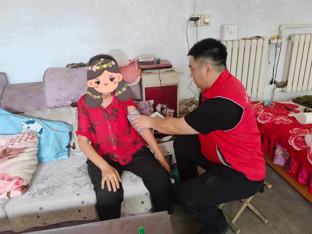 在慰问过程中,社工仔细询问李奶奶的生活近况、饮食起居和健康状况,并叮嘱李奶奶夏季天气炎热,注意防暑降温,及时喝水补充水分,时刻保重身体。并用便携式测量仪器为李奶奶测量血压心率等。李奶奶长期患有肩周炎,残联志愿者运用专业技能为李奶奶进行穴位按摩,并叮嘱李奶奶夏季也要注意放防止着凉,不要直吹风扇等。