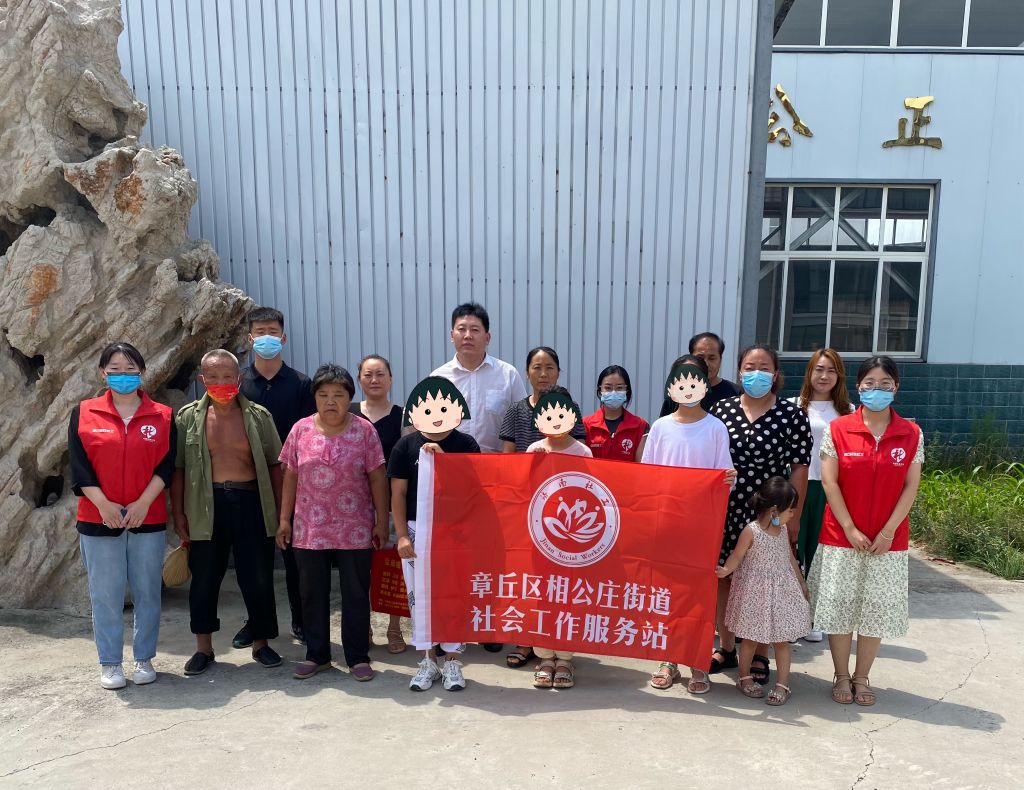 7月18日上午,相公庄街道社工站社工携手济南市章丘区城市再生资源服务中心的于会长、社会爱心人士在相安社区活动室举行孤困儿童第一次帮扶活动。