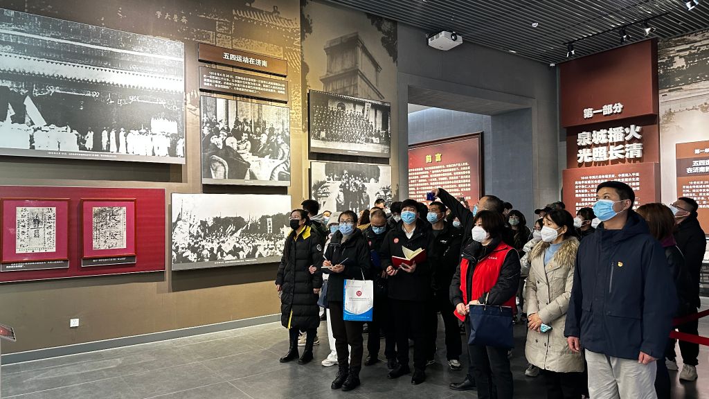 参观长清区革命历史纪念馆,社工和志愿者重温大峰山革命史,缅怀老一辈革命家的丰功伟绩,传承奋斗精神。