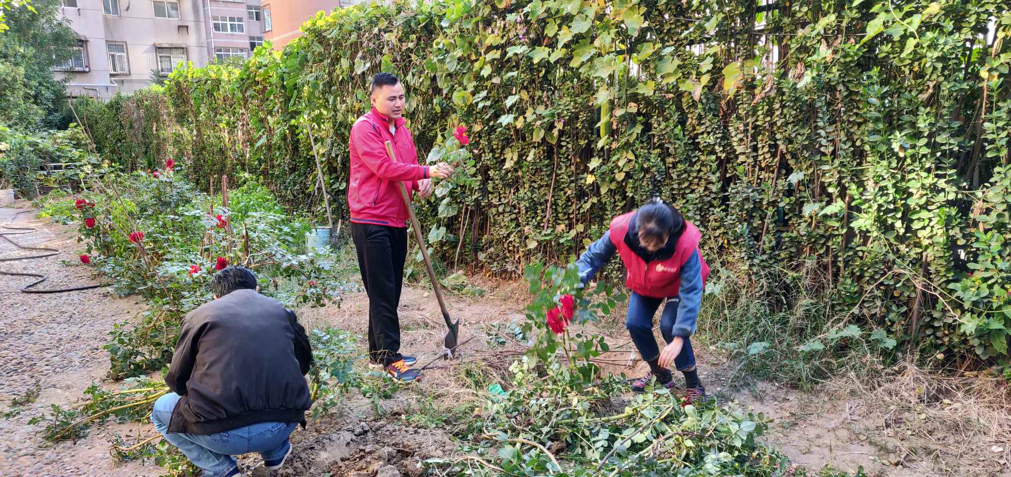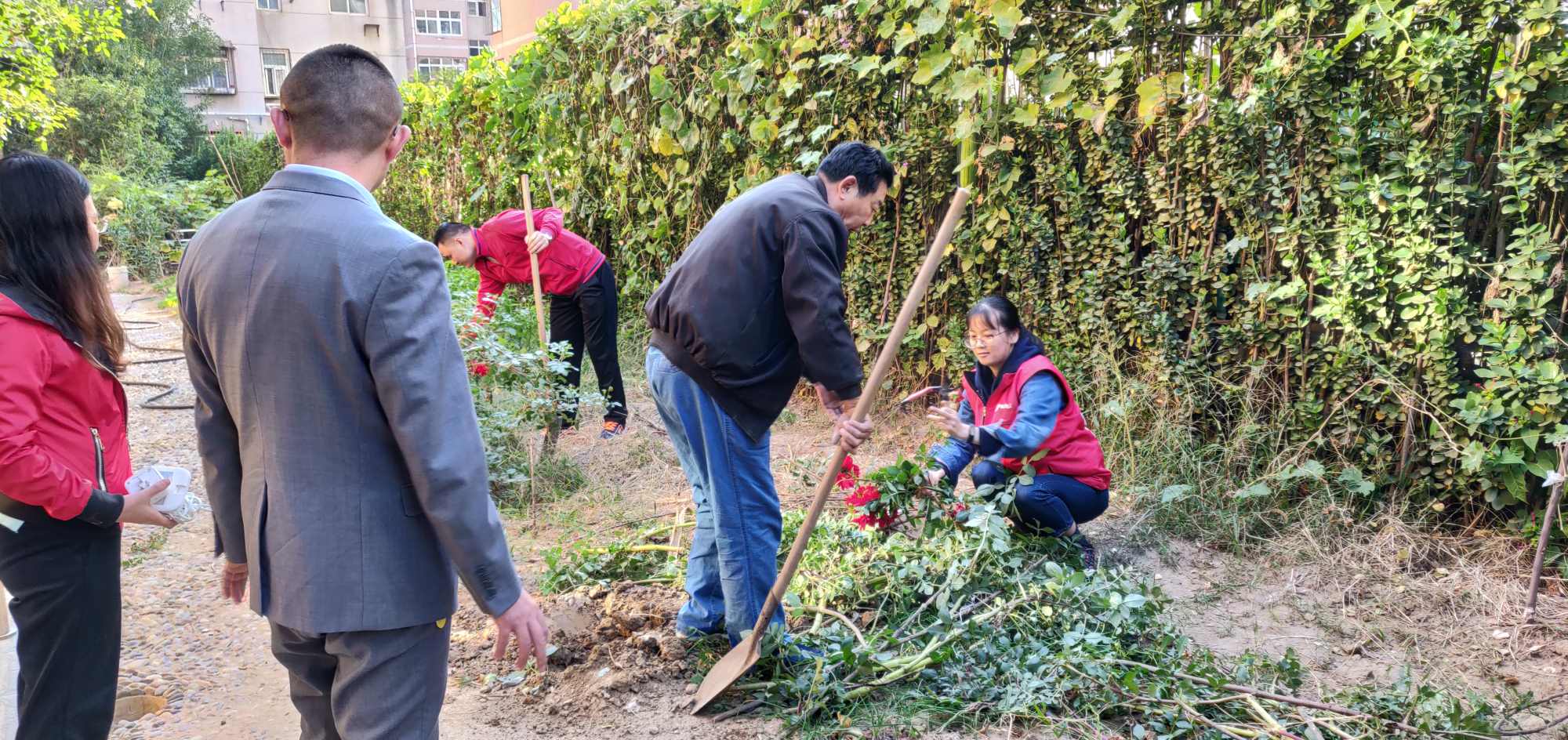 在这样一种大背景下,社工以园艺治疗理论为指导,春天时组织对园艺有兴趣的住养老人进行植物栽培,并与老人们一起探讨栽培方法和注意事项。秋风悄然而至,到了收获的季节,10月18日下午,众诚悦银龄养老社工和住养老人一起检收这一年的劳动成果,组织了“人面红花相映红”园艺治疗活动。