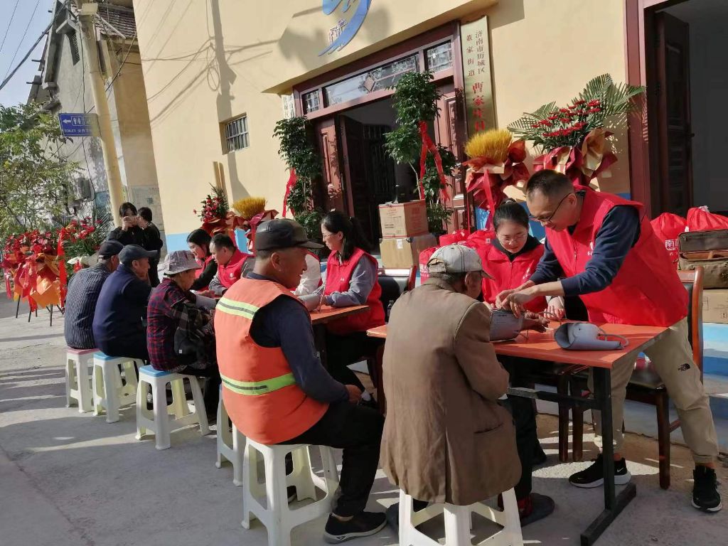 在重阳节来临之际,为弘扬中华民族爱老敬老的传统美德,丰富辖区村居老人文化生活,董家街道社工站联合齐鲁制药善行团来到曹家村看展健康慈善走访慰问活动。齐鲁制药对董家街道辖区居民十分重视,善行团由齐鲁制药副总经理徐勤亮带领,携手办公室主任孔令霞、药物警戒部经理曲满红等一行人,为曹家村村民带来一场健康义诊活动,为曹家村村民的健康生活保驾护航。