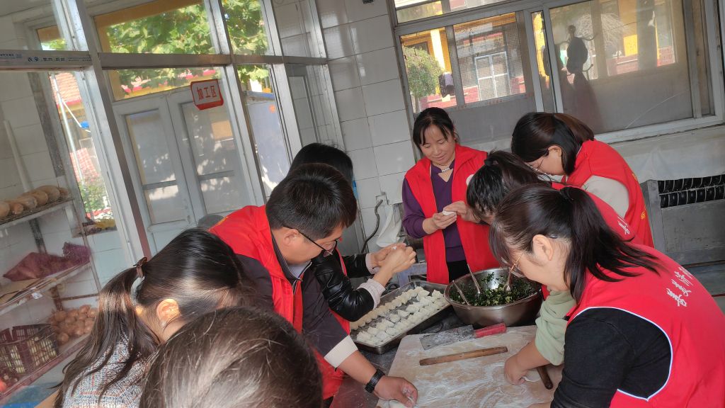 活动现场,社工和志愿者们及民政工作人员分工协作,大家一边包饺子一边聊天,如同自家人一样有说有笑,现场气氛热闹非凡,一片欢声笑语。社工们将包好的饺子送到行动不便的老人手里,老人们接过饺子脸上洋溢着幸福的微笑,饭后社工们陪同老人在院内散步、拉家常,期间老人们骄傲跟社工分享院内自己种植的蔬菜。