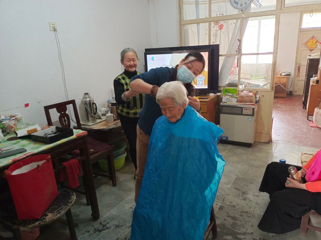 (中大槐树街道社工站链接云天使护理院上门为高龄老人理发。)