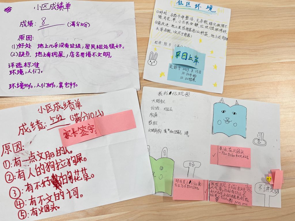 了解,发现,探讨。社工首先引导青少年认识社区、了解社区,让青少年发表自己对所居住社区的印象及社区环境的看法。随后青少年化身“小小调研员”,手拿纸笔,在社工及志愿者的带领下实地走访德裕家园一区与北辛街社区,以青少年的视角发现社区的美好与有待提升的问题,并认真记录拍照。社工与青少年共同探讨不文明现象背后的成因,大家畅所欲言:“因为很多人没有爱护环境的意识”、“他们觉得这些行为不会破坏环境”!青少年们通过漫步社区,第一次了解自己所住的真实环境,迈出参与社区治理的第一步。