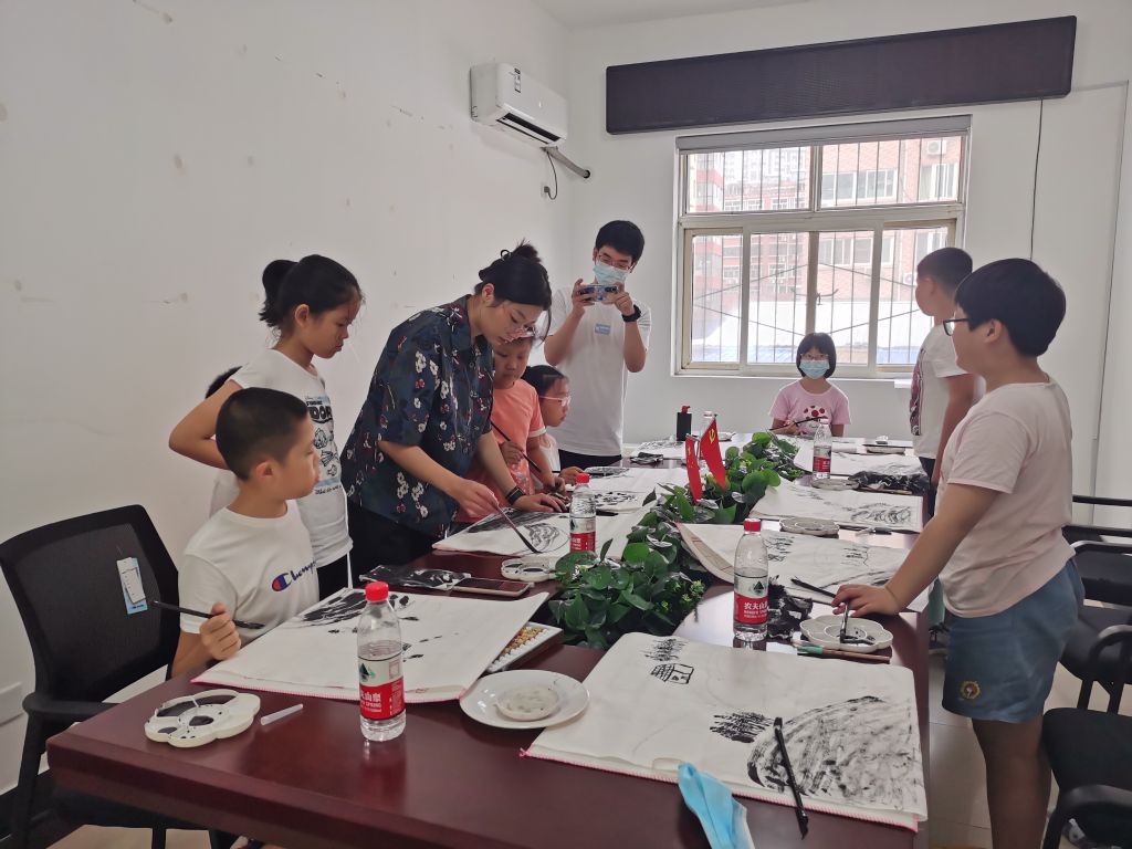 社工站在为社区青少年搭建学习平台的同时,还为高中毕业生提供了暑期实践的机会,志愿者作为社区国画老师的“助理”参与到社区服务中来,协助老师教学、帮助整理用品等。