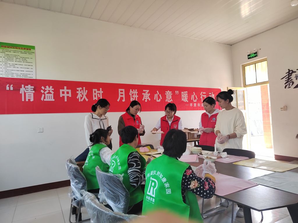 中秋佳节来临之际,为增加残障人士的幸福感,9月28日,羊里街道社工站到羊里街道仪封村如康家园举办“情溢中秋时 月饼承心意”残疾人中秋节主题活动,联合辖区内的爱心人士及志愿者,与残障人士一起欢度中秋佳节。