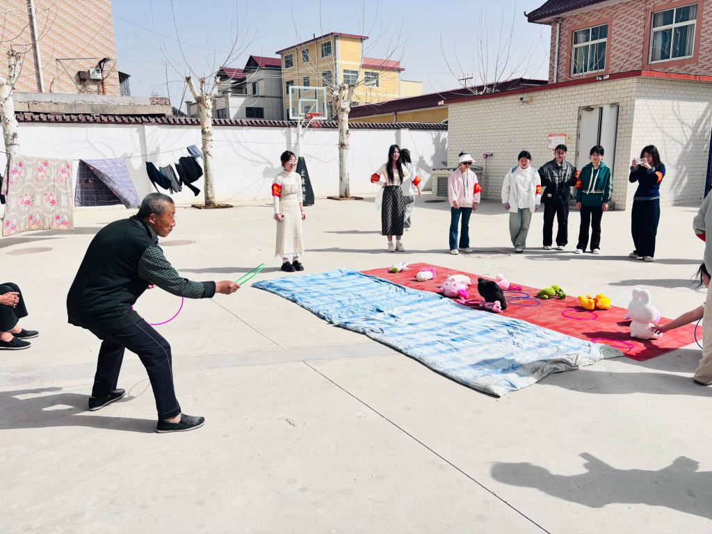 活动一开始,社工与志愿者们便精心布置了套圈游戏场地,五颜六色的奖品吸引了老人们的目光。“爷爷,您看准了,轻轻一抛就能套中!”在志愿者的耐心指导下,老人们兴致勃勃地参与其中,有的老人手法娴熟,一击即中,赢得阵阵喝彩;有的老人虽然动作稍显笨拙,但脸上始终洋溢着开心的笑容。志愿者们也积极参与其中,与老人们一起分享游戏的乐趣,现场气氛热烈而温馨。