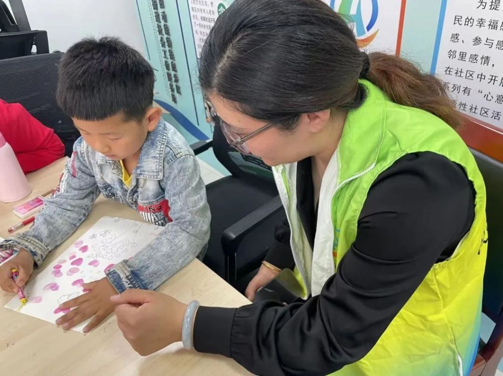 活动开始,社工向前来参加活动的孩子们,讲述母亲节的由来、节日习俗,并引导孩子们分享自己与母亲的趣事、生活中的点滴小事,让孩子们在随心所欲的交流中意识到母亲对自己浓浓的爱意。