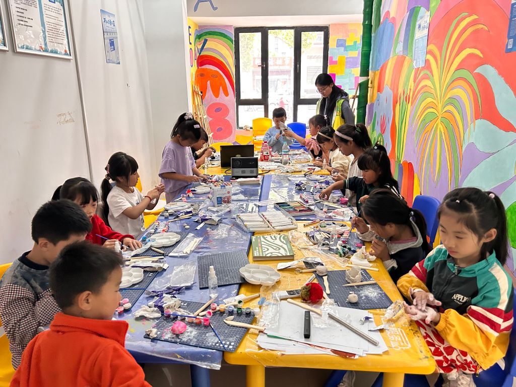 话音刚落,活动进入了淄博特色泥塑文化体验环节。在社工的引导下,孩子们开始尝试将手中的泥团塑形。他们或轻或重地按压、揉捏,泥团在他们手中逐渐变得柔顺,仿佛有了生命。孩子们的想象力如同插上了翅膀,他们有的细致地模仿着淄博的山水,有的则大胆地创造着自己心中的淄博形象。泥塑材料在孩子们的巧手下,逐渐变成了一个个生动的艺术品。每一件作品都充满了童真和创意,展现了孩子们对淄博文化的个性化理解。
