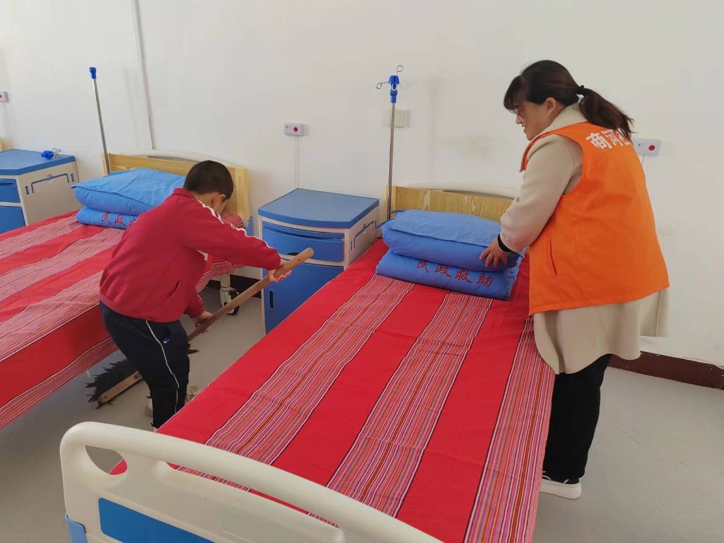 小志愿者们在社工小李的带领下,拿着水桶、抹布等清洁用品,认真地帮老人扫地、擦桌子、铺床单......,经过一个多小时的劳动,每个房间都亮堂了。“奶奶我来帮您捶捶背”、“爷爷,您多大年纪了,我给您唱首歌吧。”老人们看着朝气蓬勃的孩子们围在身边,高兴的合不拢嘴。郭大爷高兴的说:“小李你们能常常来这里看我们,我们就挺高兴的了,没想到今天你们还带着这帮孩子来,看这帮孩子,真是太让人欢喜了。”