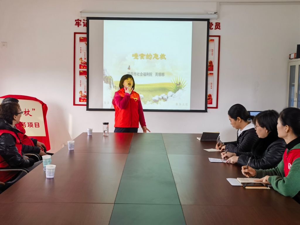 市社会福利院党总支书记、院长戴桂平详细介绍了“金手杖”志愿服务项目的情况。他说,针对全市社区养老难题,市社会福利院作为公办社会福利机构,应该发挥养老行业引领示范作用。近年来,福利院成功培养了一大批高素质养老护理员师资力量、专业技术力量、老年人能力评估力量、社会工作专业力量,这些专业技术力量,不应该仅在福利院发挥作用,还应服务于社会,该走出去,进入社区基层,进入千家万户,发挥专业技术优势,对全市社区、基层养老服务工作从业者甚至是居家养老的家政工作人员进行能力提升、专业培训、技巧培养,为“康养济南”的建设提供助力,发出福利院的声音。