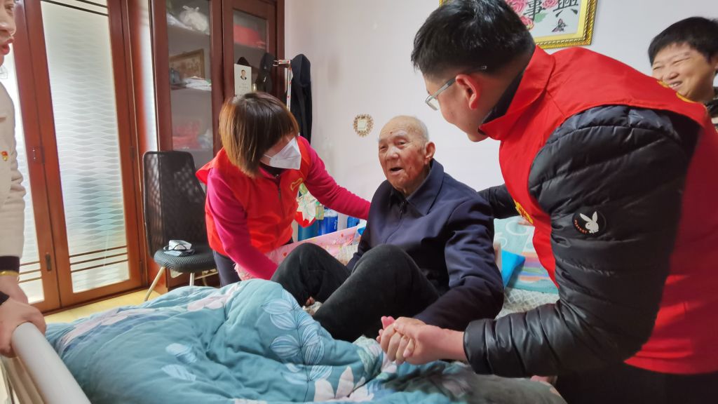 随后,福利院党员志愿者来到90岁的高龄失能老人韩桂林家。老人目前瘫痪在床,完全有家人轮流照顾。志愿者详细了解了目前存在的困难和需求,为老人检查了身体情况,赠送了护理用品。向老人家属介绍预防褥疮、护理私处的方法,手把手演示相关护理操作技巧。韩桂林家属拉着医护人员刘守亮的手表示福利院志愿者们讲解的这些知识真正解了自己燃眉之急。