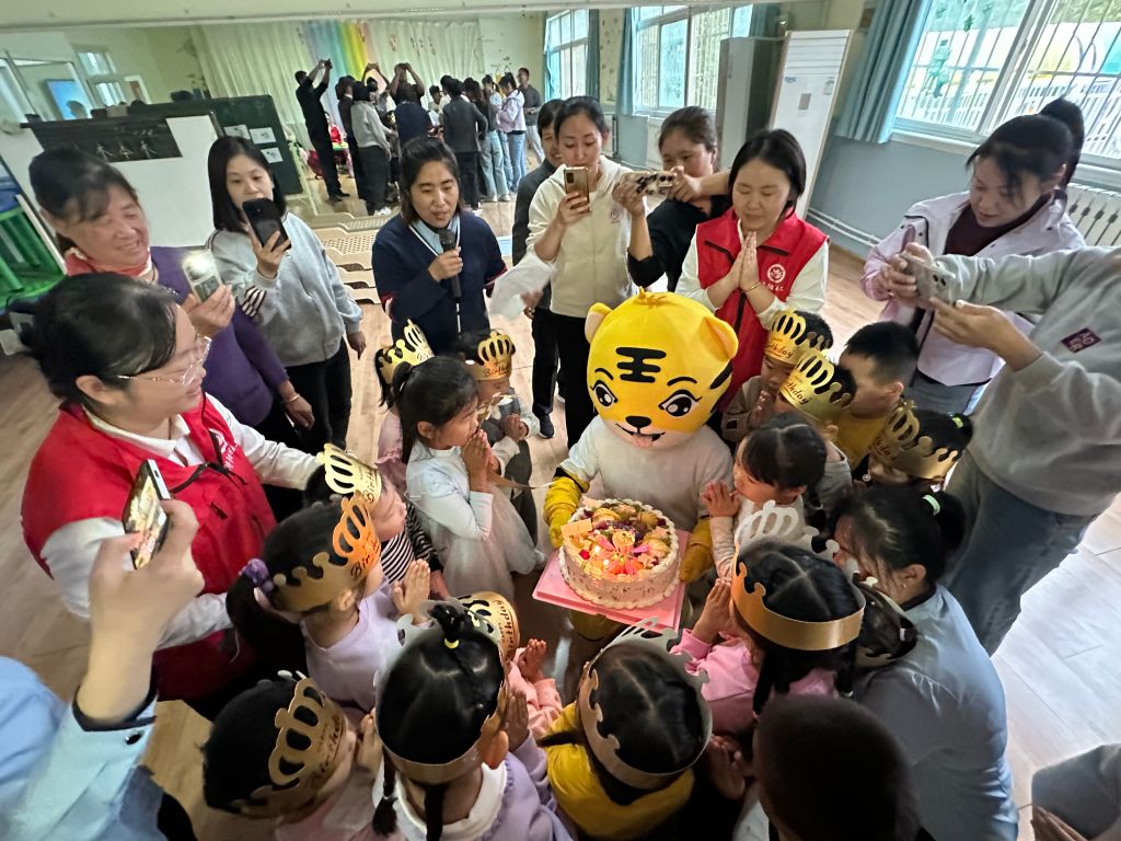 活动中,社工和家长在老师的带领下与孩子们进行亲子游戏,游戏中,孩子们与家长以呼啦圈不掉落方式进行比赛,锻炼了幼儿的身体协调能力,加强幼儿的集体荣誉感;家长与幼儿配合默契,积极参与游戏,场面热闹非凡。游戏结束后,社工与老师和家长为小寿星们唱起生日歌,“祝你生日快乐,祝你生日快乐……”随着生日歌的唱响,孩子们欢快地拍起手,共同在蛋糕前许下美好的愿望,一张张欢乐的笑脸,使整个生日会洋溢着浓浓的祥和、快乐、幸福的氛围。