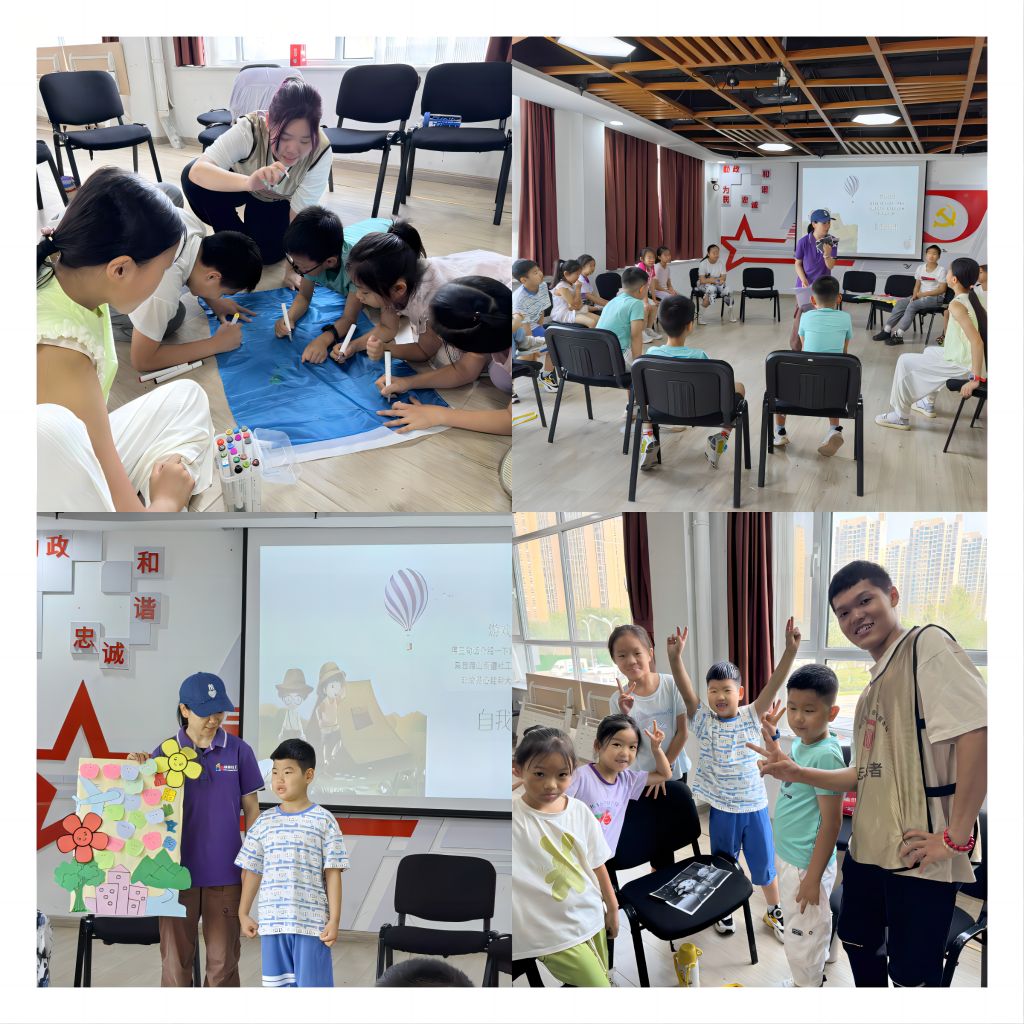 沉浸式开营,强化服务体验。开营活动作为整个夏令营活动的开端,能否成功地开展,很大程度影响到后续活动的顺利开展和效果。为此,社工站策划开展“‘泉’心‘童’行,不负今夏”开营活动,向营员介绍夏令营活动的目的、流程安排、注意事项以及社工与志愿者的基本情况,让营员对夏令营有基本的了解。社工借助“签到板”营造仪式感满满的签到环节,让营员“觉察”到即将步入新的“旅程”,探索新的“世界”。营员集合后,社工通过热身游戏、互相介绍等环节让营员相互熟悉,拉近营员们的距离。“拼图分组”游戏完成后,各位营员一起想组名、选组长、画组旗、定组规,组长带着组员展示队伍风姿,为日后团队合作打下基础。