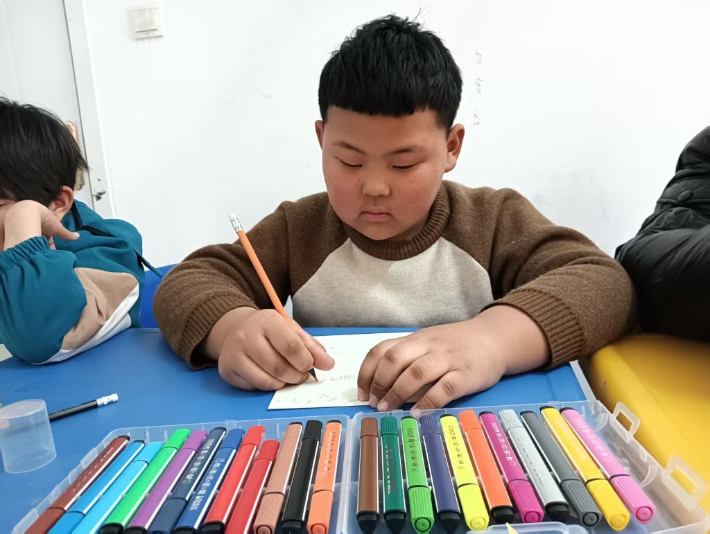 在制作明信片环节,社工精心准备了A5卡纸、彩笔、贴纸等材料,并耐心指导孩子们制作卡片。孩子们充分发挥自己的想象力和创造力,用五彩的画笔在卡片上描绘出心中的美好祝福。有的孩子画了春天的花朵,有的写下了对家人和朋友的祝福话语。社工穿梭在孩子们中间,给予他们鼓励和帮助,引导孩子们通过明信片表达内心的情感,促进了孩子们的情感交流和表达能力的提升。