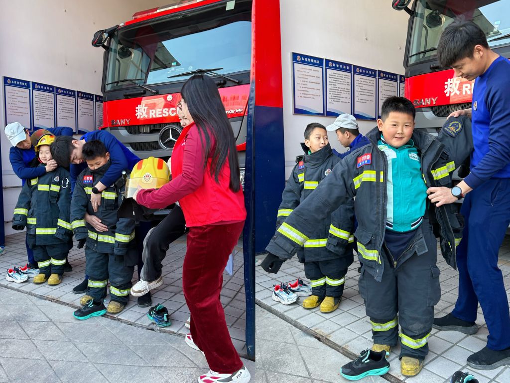 活动中,社工时刻组织好小志愿者们的秩序,跟随消防官兵们参观了消防车库,消防官兵详细介绍了各种消防车辆的功能和用途。小志愿者们围着消防车,仔细观察着车上的每一个设备,听着消防官兵的讲解,不时提出自己的问题,展现出浓厚的兴趣。随后,消防员们还现场演示了如何快速穿戴消防装备,小志愿者们看得目不转睛,纷纷表示要学习这种迅速反应和严谨的态度。