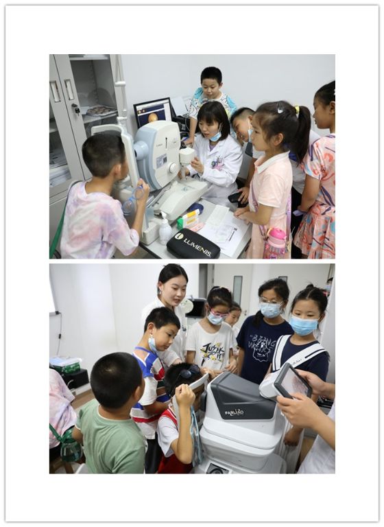 最后,孩子们来到眼科,由眼科的温晏医生和其他工作人员讲解了如何保护视力、预防近视的知识,并分组参观了验光及治疗近视的各种仪器。现场还为有需求的小朋友做了视力的常规检测。