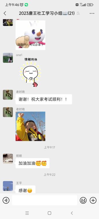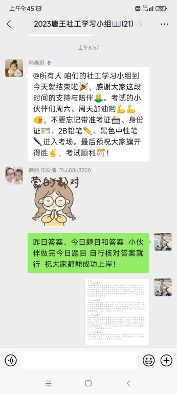 互助学习小组结束了,社工为组员送上真诚的祝福,预祝全体成员均成功上岸!组员们也纷纷献上了自己的想法,表示无论考试结果如何,都会将小组中学到的社工知识和备考技巧应用到今后的学习和工作中去!