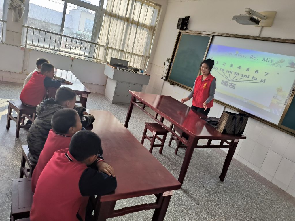 五峰山街道社工站通过前期需求调研,关注到山区儿童对艺术需求的。儿童时期是一个人生理、心理发展的关键期,而音乐对于儿童的身心发展有着重要的影响和作用。五峰山街道黑峪小学地处偏僻,多数孩子是留守儿童,偌大的一个学校只有33个孩子,我们通过前期走访了解到学校里没有专业的音乐、美术、舞蹈老师,一个学校只有6名老师,都是身兼数职,孩子也基本没有上过兴趣班,为了丰富山区儿童艺术生活,促进儿童健康快乐成长,3月9日下午五峰山街道社工站链接到山东艺术学院的3名大学生志愿者一起开展了“哆唻咪”山区儿童的音乐之声活动。