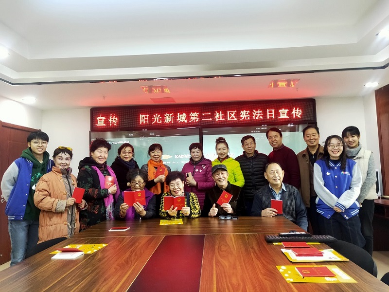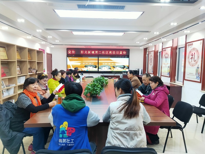 12.4是大力宣传宪法和国家基本法律制度的国家宪法日。为宣传宪法,使居民了解宪法中有关国家根本政治制度、基本经济制度、公民基本权利义务和国家生活基本原则等内容,阳光新城第二社区居委会与槐荫民政社工蒲公英项目组一同举办宪法日宣传的活动。