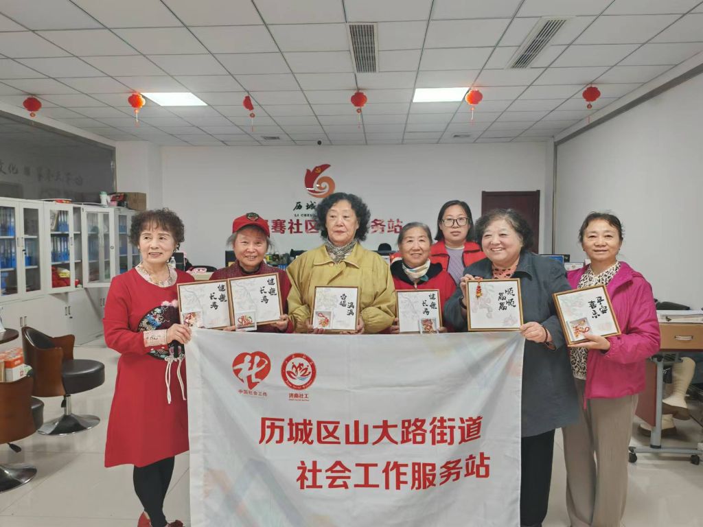 此次老年人朋辈支持小组的最后一节课不仅是一次艺术创作活动,更是一次心灵的交流和碰撞,也让老年朋友们在活动中收获了快乐、友谊和自信;同时也为老人们搭建了一个相互支持、相互关爱的平台,让他们在晚年生活中感受到了社会的温暖和关怀,进一步提升了他们的生活质量和幸福感。未来,山大路街道社工站将继续关注老年人的精神需求和生活状况,为他们提供更多的支持和帮助;同时也将继续探索更多适合老年人的活动形式和内容,让他们在晚年生活中依然能够充满活力、绽放光彩。