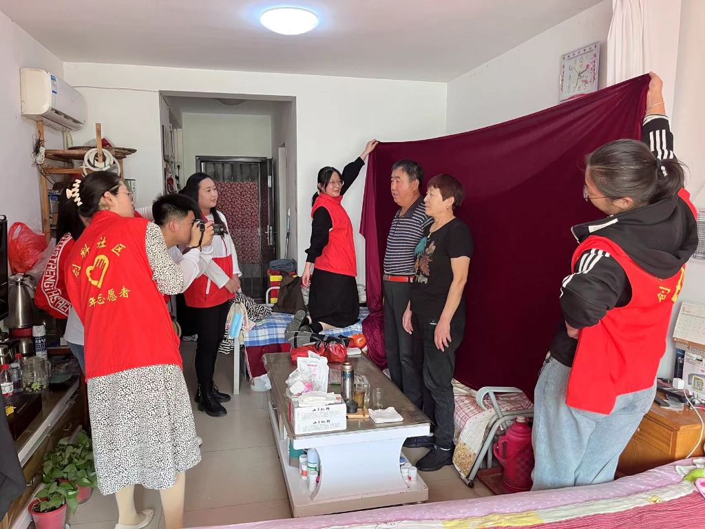 为进一步推进辖区内老年人精神文明建设,展现老年人幸福和喜悦的精神风貌,近日崮云湖街道社工站链接齐鲁工业大学志愿者,走进乐天创科社区开展“最美夕阳--关爱老党员,幸福来留念”系列活动,通过发挥“五社联动”力量,整合各方资源,为社区老党员入户拍摄合照并送上御寒围巾,该活动旨在通过幸福留念的方式为老党员们记录幸福的时刻。