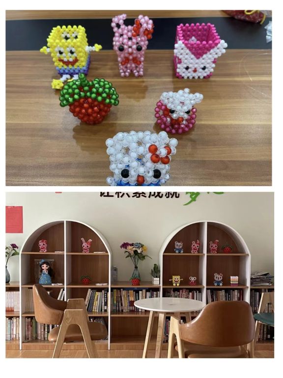 此次的串珠活动是社工站开展公益事业的重要一环,既是通过这些手工作品收获公益资金,同时也是向社区内部征集协助参与活动的公益力量,为需要帮助的人群链接社区的公益资源,提供更完善的社会支持网络。随着公益角活动的接连开展,几位擅长串珠制作的社区老人都将自己串出的手工作品在社区内部对外展览出售,让公益活动逐渐步入正轨。展台上琳琅满目的作品无不彰显着老人精妙的串珠技法和为公益事业发展的奉献精神,社工也从老人身边虚心学习,提高自己的同时为社区的可持续发展注入活力。老人们手法熟练,对于材料用量掌握精确,是此次公益活动的主力军,由于社工需要把这些工艺品对外出售,用收益促进公益事业的开展,老人们在教授我们孜孜以求的串珠技法时不遗余力,也为我们指出哪几类的作品最受人们欢迎,为社工站公益事业的壮大指明了方向,也带来了希望与力量。