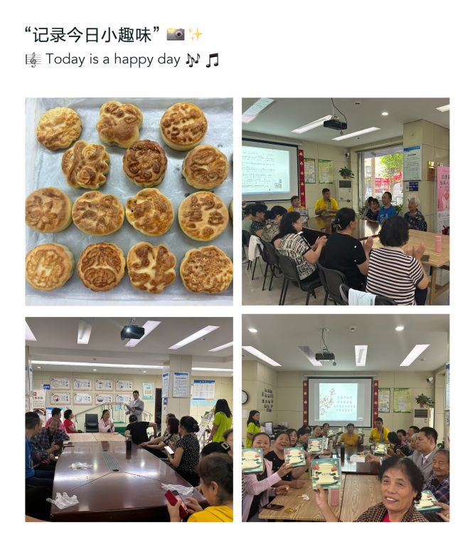 在等待月饼出炉的间隙,社工组织老人们献上精彩纷呈的才艺表演。诗朗诵《春江花月夜》和《唱支山歌给党听》《我和我的祖国》一系列的大合唱,引得现场掌声不断,欢笑声此起彼伏,大家都沉浸在这欢乐的氛围中。最后,社工将月饼进行包装,作为礼物送给每一位老人,让他们在中秋佳节之际能够品尝到自己亲手制作的月饼,感受到浓浓的节日氛围。