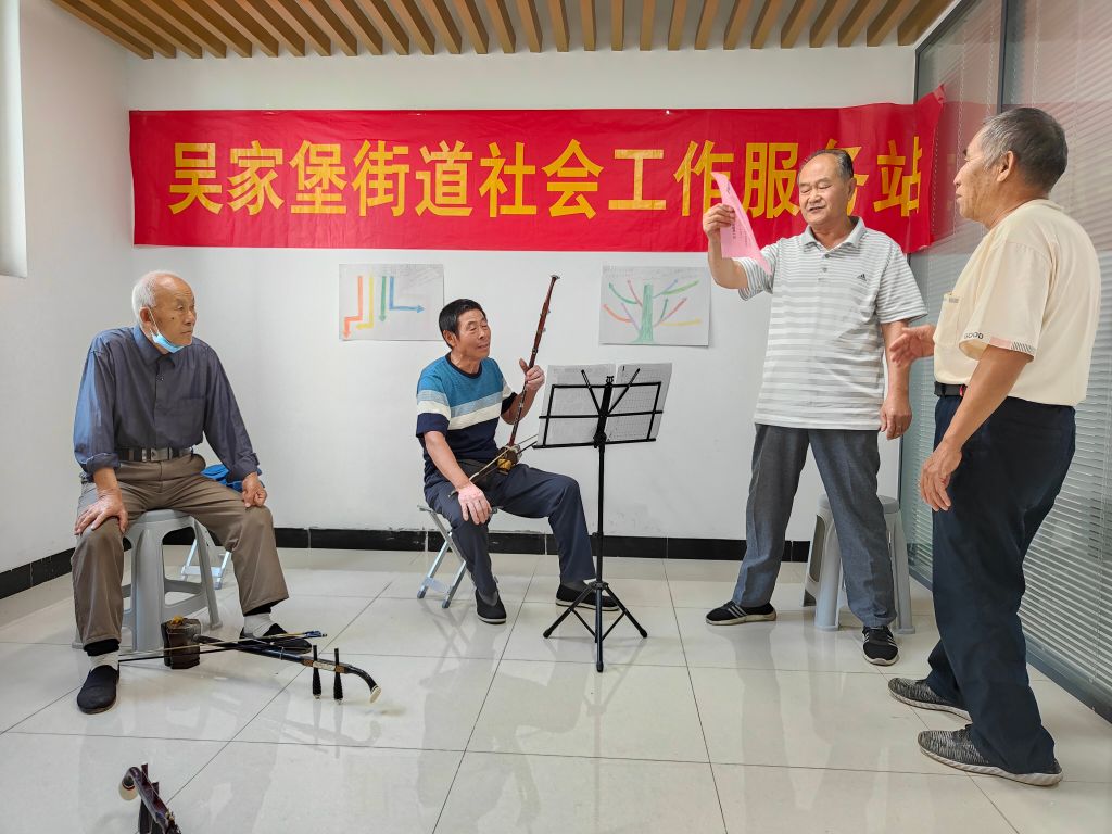 社工秉承专业工作理念,基于当前文娱小组活动挖掘有能力、有想法、有活力社区老年人,以共同兴趣爱好为出发点筛选骨干成员、进行资源融合,从而形成社区自组织雏形。在社区自组织培育过程中,社工为骨干成员开展赋能培训,协助引导学习内部沟通、管理等技巧,旨在提升自我服务能力,促使长期稳定持续发展。同时,社工对站内资源进行有效整合,汇聚不同力量,不断孵化出“特色”带动“专业性”的社区自组织。