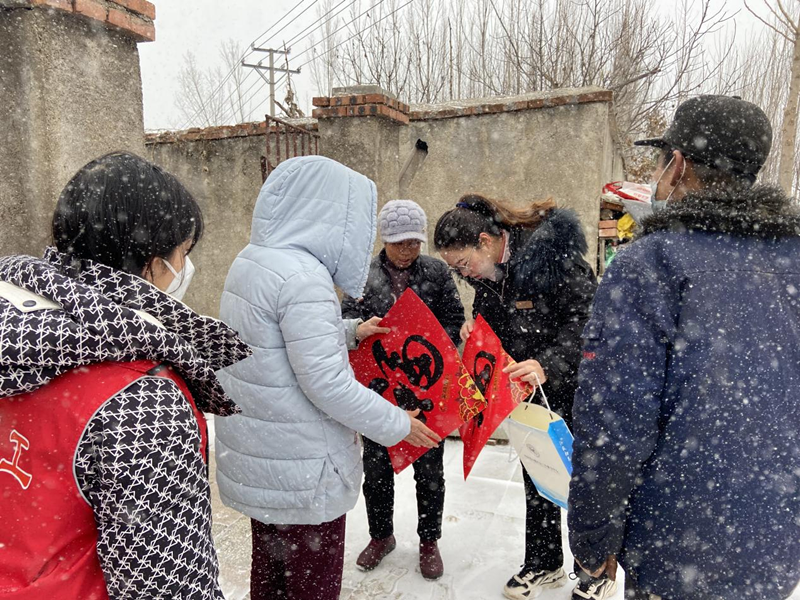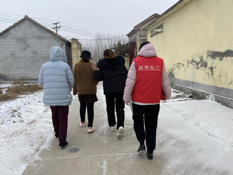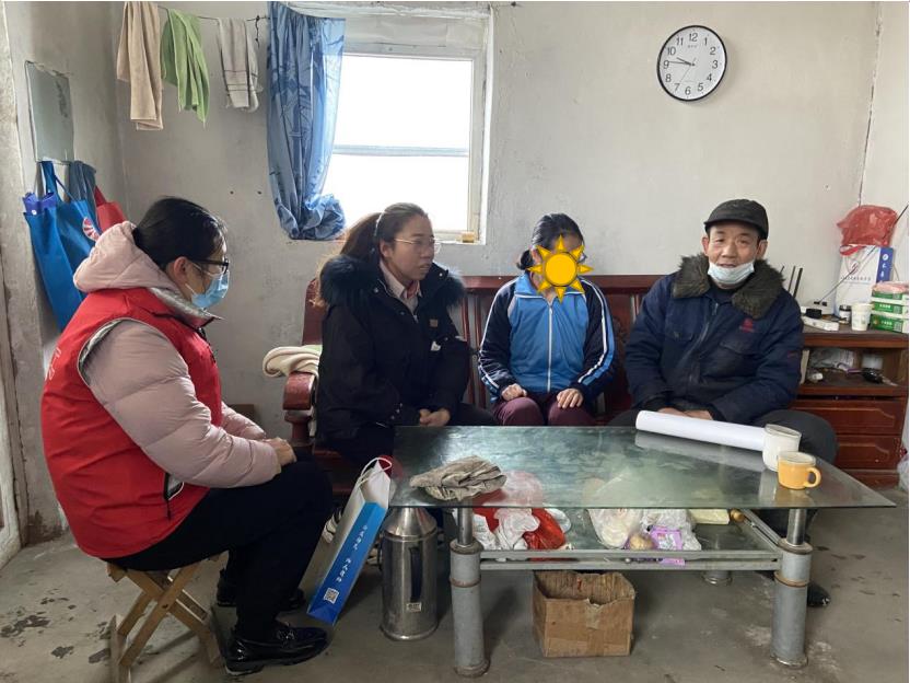 初雪纷飞,团队成员不畏寒冬,满怀热情,首先走进“春蕾女孩”家中,邀请其以“小小志愿者”的身份加入本次走访活动,一同前往独居老人们的家中进行探访。