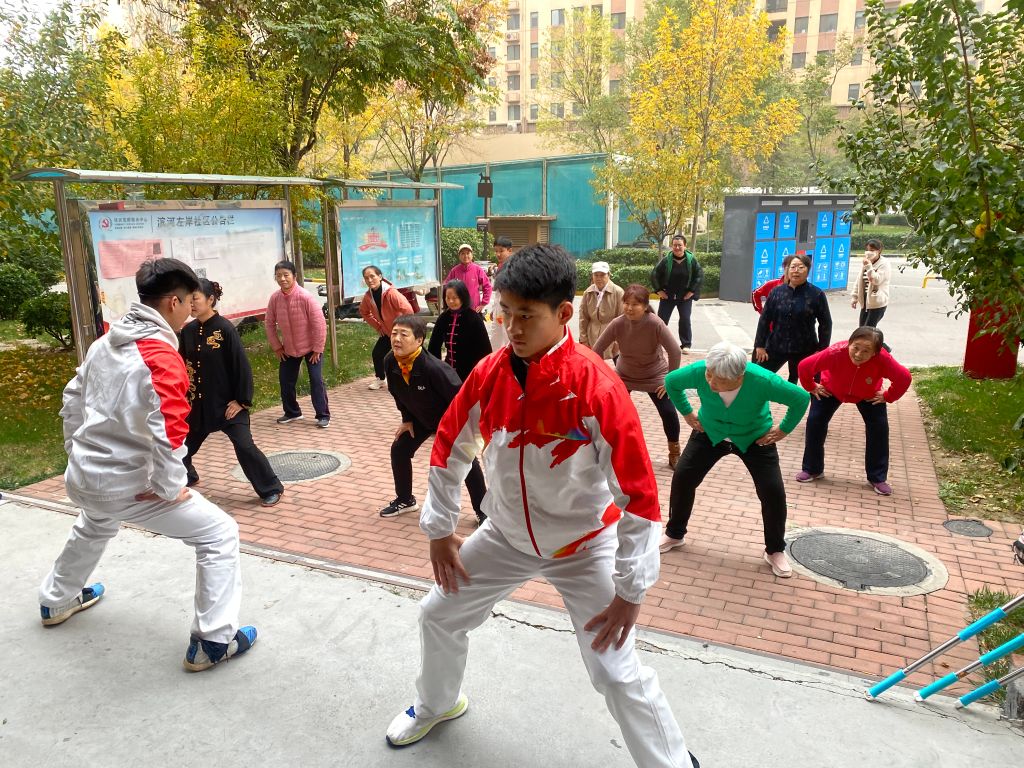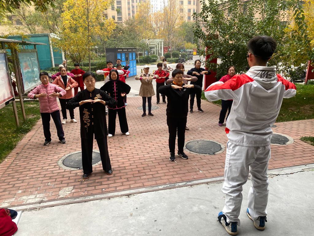 活动一开始,教练们耐心细致地讲解每一个动作的要领和注意事项,确保居民们能够准确掌握。随后,教练们亲自示范,他们的动作流畅自然,气韵生动,随着教练的示范,居民们纷纷起身,跟随着节奏,开始了八段锦的练习。他们或挥动手臂,或转动身体,每一个动作都透露出一种从容与自信。