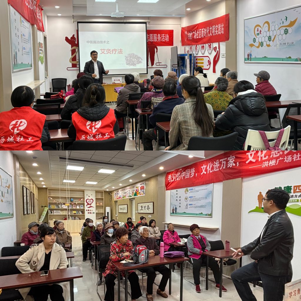 冬天既是疾病高发季节,也是养生的最佳时节,为了进一步提高社区居民保健意识,了解和掌握中医养生知识。11月19日,洪家楼街道社工站联合洪楼广场社区开展了“健康讲座进社区 护航居民好生活”中医养生宣传活动。目的在于提高社区居民健康自护能力,让居民在冬季有一个健康的身体,预防各种流行感冒和病毒的入侵。